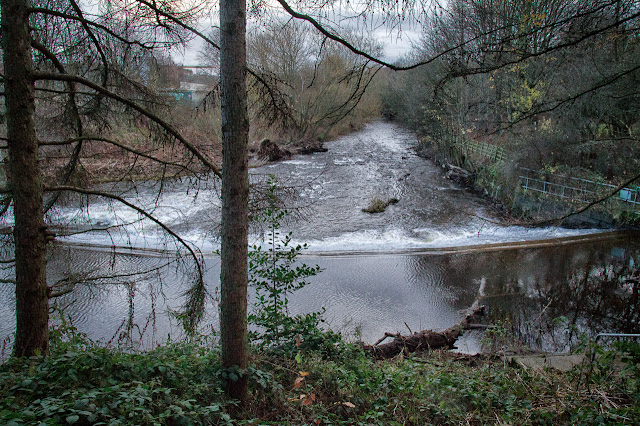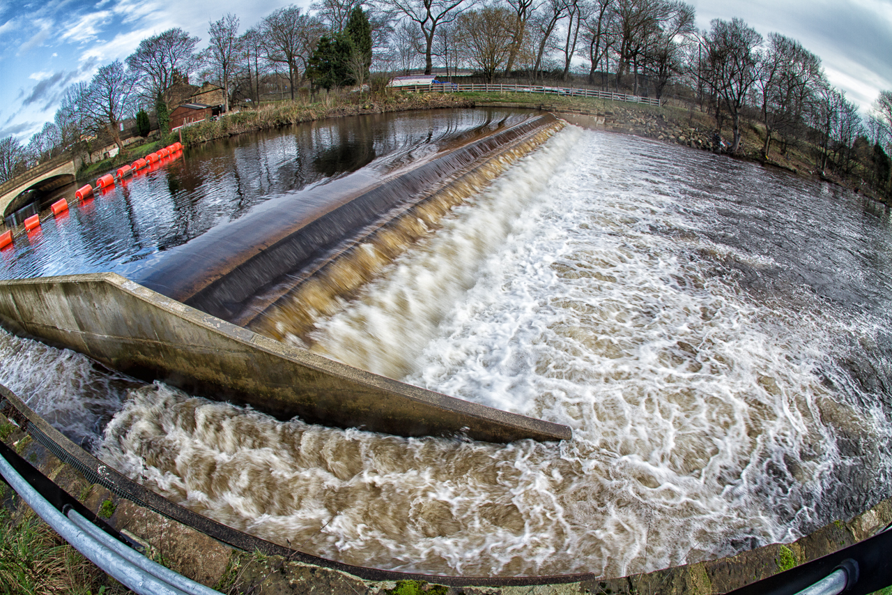 I used my fisheye lens to take this shot looking over the bridge and down the channel between the beds of weeds. Normally the water would extend to the pathway you can see on the left where people are walking towards the bridge and up to the base of the trees on the right. I also managed to get a sunburst effect of the sun through the trees on the top right which I quite like.