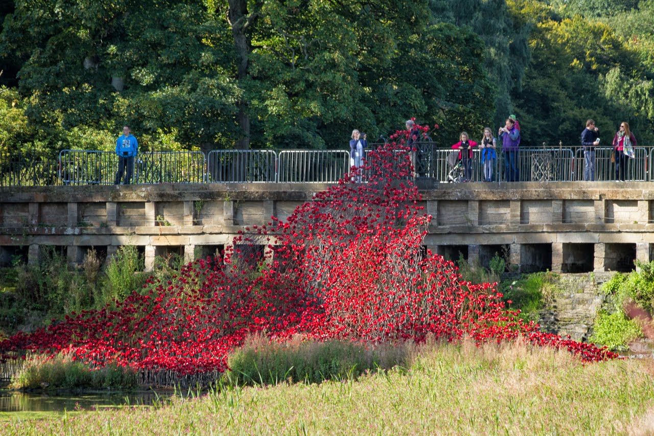 As we got closer the detail in the poppy wave became easier to see and also the extent of the weeds. It is a shame really because this would have looked much better with the sculpture reflected on the lake with more water in it. On my more recent visit here there is even less water in the lake as the repair work continues. Normally there is also a nice cascade of water coming under the bridge which would added even more interest to the scene.