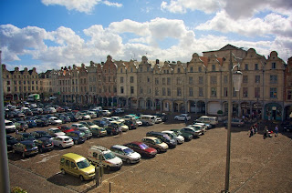 The rest of the town was fairly uninteresting so we sat outside in the square with a bottle of wine and watched the people go by. We discovered that there was some kind of fete going on in the square on Sunday, so after the market had packed away there was more activity as they started to set up some different stalls and two stages. There also seemed to be a lot of strangely dressed people about but I don't know if that was normal for Arras on a Saturday night or if it was to do with the fete.