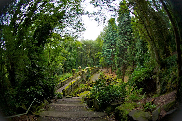 I wasn't going to include this last shot in the post but as I've mentioned the old cascade a couple of times I decided to add this one. In the foreground are the steps coming up from the old entrance and in the top right corner you can see the little bridge where the water for the cascade used to come down. I imagine that when the cascade was in full flow this would have been quite a spectacle. The pool no longer exists and has been filled in for safety I would think. A new cascade has been made near the top of the park with a pond and a fountain (see my post 06/07/09) but I don't think it's as impressive as this old one would have been. However I shouldn't complain as they making improvements to the park every time I come back to see it. I don't suppose it will ever be as popular as it used to be but I quite like the old abandoned areas as much as the newly refurbished ones because there are so may photo opportunities here. I have a few more photos from the day (fungi, flowers and butterflies) and I might post them later.