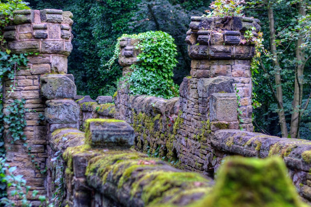 On the bridge the old stonework is overgrown with moss and ivy and some of the bits of stone look as if they've been dropped here from somewhere else. This next photo was three shots taken with a 50mm lens at different exposures and tonemapped to bring out the rich detail in the stonework.