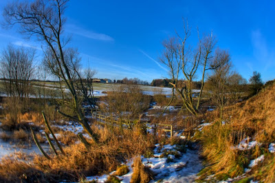 This next image is of a frozen pool in a rock on top of Marsden Moor near the trig point. As you can see there is very little snow left on the top of the hill but a few yards away the snow was waist high where it had drifted against the side of the rocks. I've just reprocessed this image in the last couple of days by tone mapping it very hard using Photomatix inside Aperture 3. I've has a real struggle getting the Photomatix plug in to work since I upgraded to Aperture 3, but I'll keep that story for later. I've also used some of the new local adjustments to selectively boost the contrast on the main two rocks to make them pop out of the scene.
