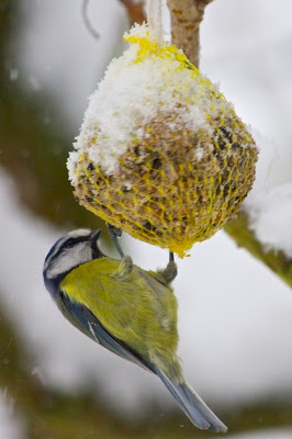 We had a lot of visitors to the feeders on the tree while it was snowing. The next image was a little blue tit.