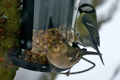 Then finally with the bird we have a great tit and a female robin sharing the feeder.