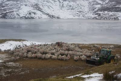 As the farmers got nearer to the feeding point hundreds of sheep appeared coming from all directions. I hadn't realised there were so many sheep up here. I'd try counting them but I'd probably fall asleep.