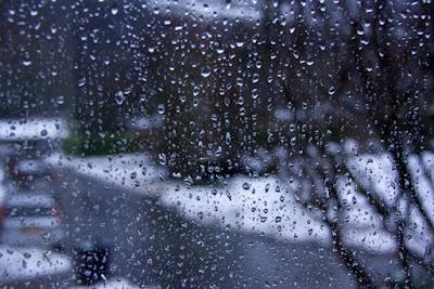 In mid January we had a very small break from the ice and snow which was replaced by heavy rain. In this first image I was trying to get the rain on the window in focus and leave the scene outside the window as a partially recognisable blur. As you can see the snow hasn't gone but at least the road is clear for a change.