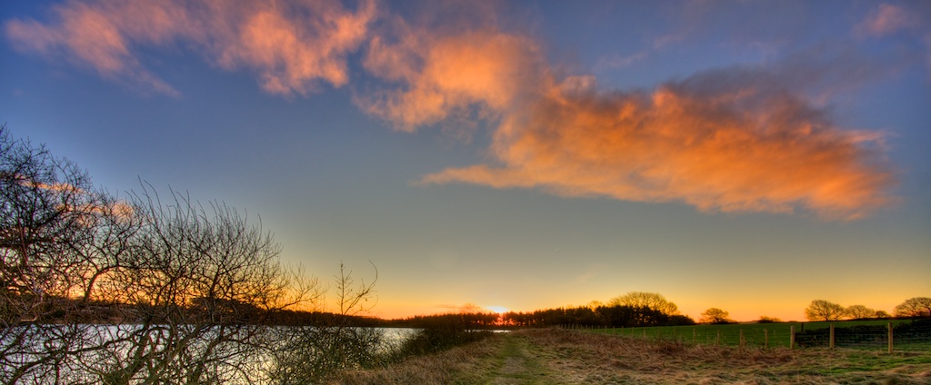 As I walked around the sun started to set and although it wasn't a perfect sunset there was quite a bit of colour in the sky for a while. Both of the next two images have been lightened quite significantly as it was nearly 4pm and really quite dark. Again I've processed tone mapped images but this time with a bit more surrealism than the church images to bring out the colours in the sky.