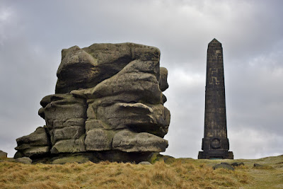 I thought I'd blogged about Pots and Pans before, but looking back through my archive I can't see it, I must have dreamt about it. Anyhow, last time I came here it was Remembrance Sunday and the place was packed with people having a memorial service and there was a brass band for the hymns. Pots and Pans is a bleak hilltop above the village of Greenfield which is on the border between Yorkshire and Lancashire. In the past Greenfield has belonged to both counties but I think it's back in Yorkshire at the moment, although it's in the Greater Oldham Metro so maybe it's in Lancashire.