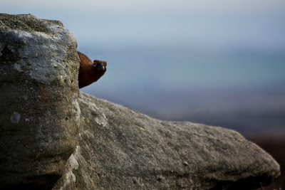 As I was walking along I just caught in the corner of my eye this grouse peering out at me from behind a rock.