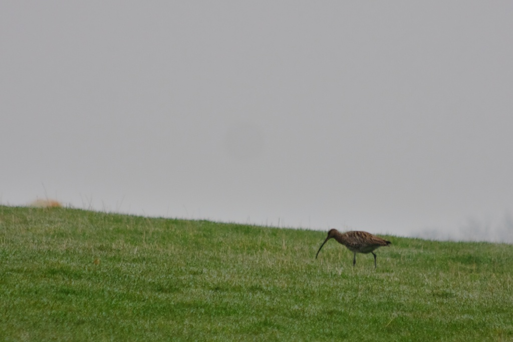 I guess the birds were being a bit shy today because as I walked down the track they got further away. So I started walking back to the road when I spotted one of the Curlew land in the field. I sneaked up quietly and managed to get quite a few shots of it wandering across the field and occasionally pecking at the ground.