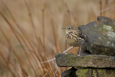 As I headed back towards the road this little Meadow Pipit stood on the wall posing for its photo taking. I have a few pictures of these little precocious birds over the last year or so. One of them with Evey the dog about a foot away from it and another with the bird stood on top of a post with a beak full of insects. I had only identified them as little brown birds before but this time I think I have an accurate id.