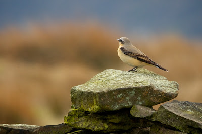 One of the Lapwing landed in the field behind me so I set off towards it to see if I could get a better shot of it. It was too far off and I could tell that if I headed towards it then it would just fly off. I turned around and there behind me was this little Wheatear sat on the wall. I took quite a few shots of it before it left but I liked this one the most because there is just a hint of catchlight in its eye. (click to get a bigger picture). From the colouring of this bird it is either a female or a juvenile, the male is more of a grey/blue colour.