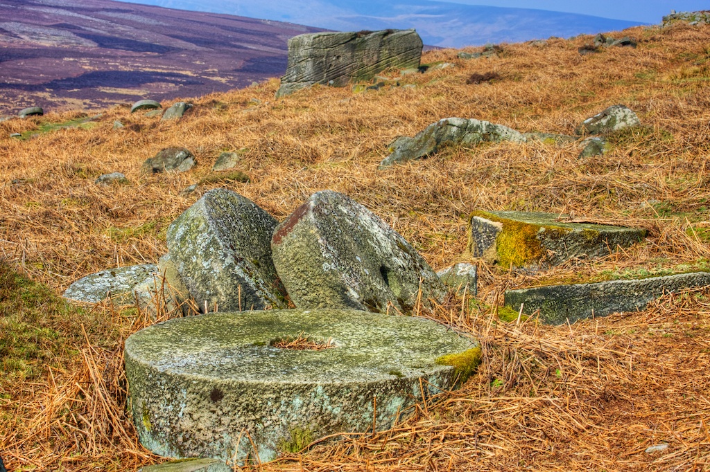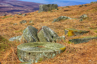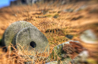 As I walked further along the path there were more and more millstones scattered across a wide area. There must have been around a hundred that I saw just lying around or piled up in twos and threes. Eventually they became less of a novelty and I got a bit fed up of making pictures of them. They were all different sizes and I saw a couple that had no hole in the middle which was a bit unusual.