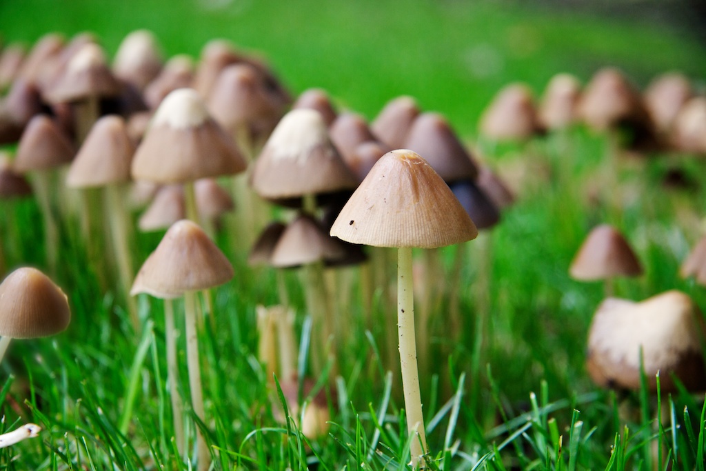 I moved around a bit to get this alternative shot of the two mushrooms and this time I was looking through a gap in the undergrowth hence the green blurry areas at each side. I think maybe when I look at it now that maybe I should crop out some of the green because it's too distracting. However I think I prefer this angle to the previous one because the stalks of the mushrooms are more visible.