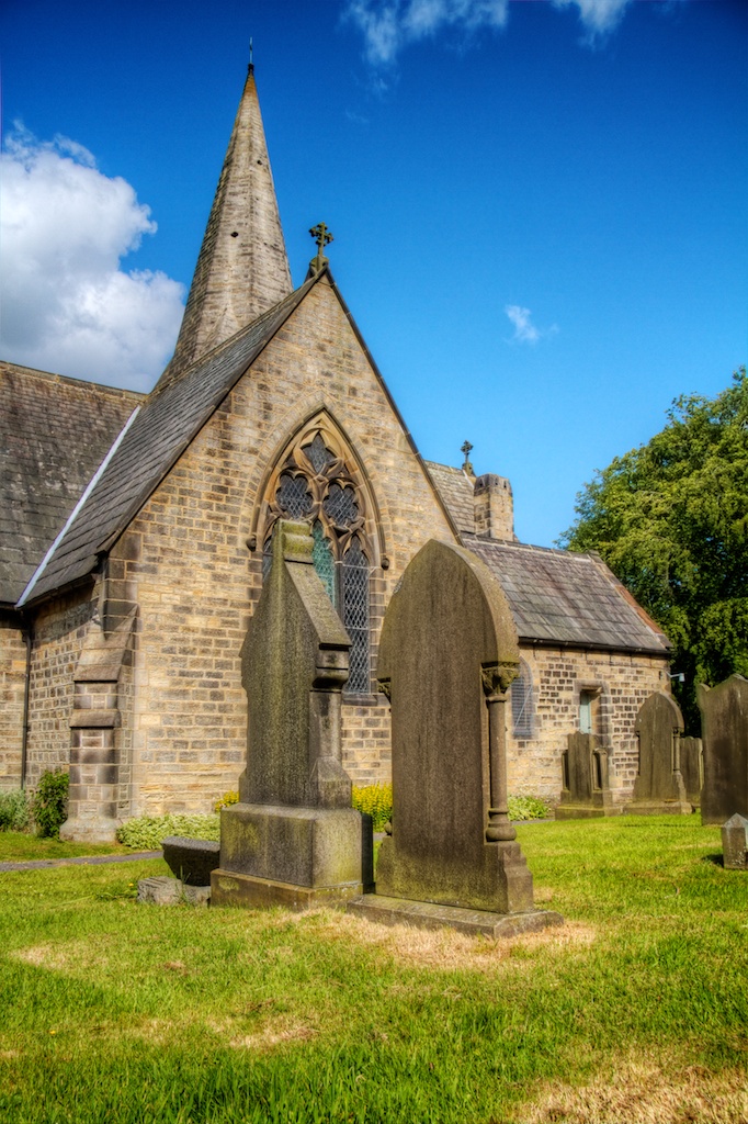 In this next shot I've take the shot from down low and tried to be a bit artistic. The shapes of two gravestones in the foreground are supposed to being mirrored by the steeple and window behind them. I'm not sure if it works or not though.