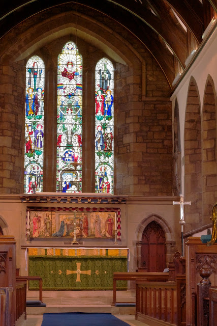 It was quite dark in the church but I mounted my camera on the tripod an made a few images. The choice of the 50mm lens was perhaps not too suited to the task as I really needed something a bit wider. I will definitely need to go back and take some more photographs both inside and outside this church. The altar area seemed to be the oldest part of the church with the bare stone walls and this lovely stained glass window. In the side of the wall was a little hole (or squint) which went into a hermits dwelling that was built onto the side of the church. St. Agnes lived here for over twenty years and the hole was to enable her to "squint" at the clergymen as they performed their services.