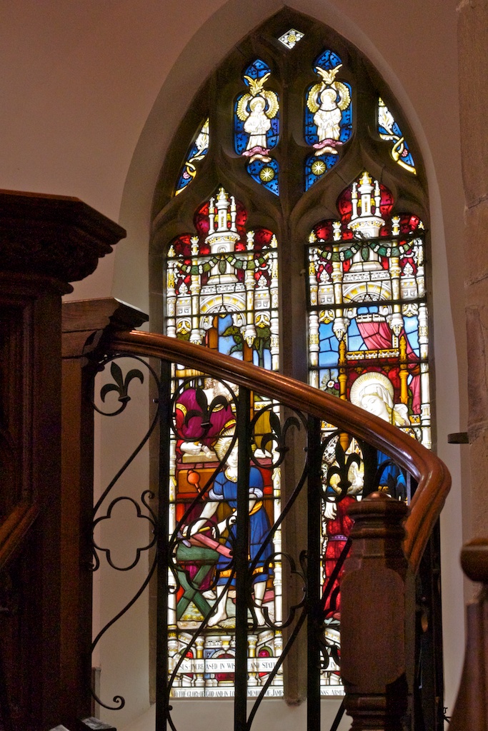 To the side of the pulpit was another, smaller stained glass window which looked much newer than the one behind the altar. Here the walls had been plastered which also made this area look a lot newer.
