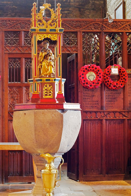 At the back of the church was this medieval font which had been taken away from the church but was later returned. The font was big enough to cover a baby completely with water at the christening. The gentleman had told me that in the olden times they only changed the holy water once a year so it was a bit of a health hazzard towards the end of the year. The cover was a much later addition and was hung from chains attached to the ceiling.