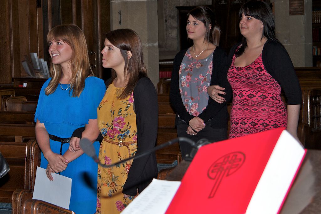 Here are three of the bridesmaids and a substitute (Rob's (not the vicar) girlfriend) for the evening, stood in the aisle during the first part of the ceremony. I am quite impressed with Lynne's (my wife) composition of the photo with the bible in the foreground. Maybe she should be the photographer of the family rather than me.