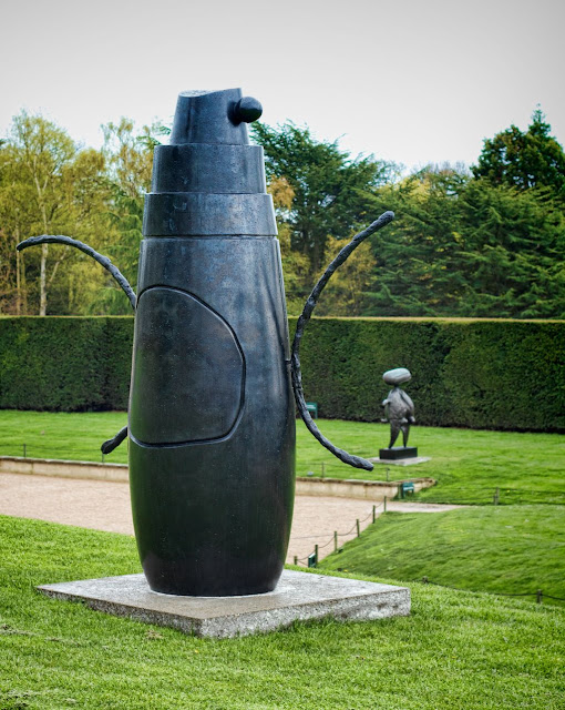 I must admit I didn't know anything much of Miro before I came to the exhibition and I was struck by how much similarity in style there was between most of the prints, paintings and sculptures. The sculptures inside looked to me smaller versions of some of those outside and the paintings looked to be of the sculptures. It could have been the other way round of course that the sculptures where representations of the paintings. Anyhow, I liked most of the work, although not all of it appealed to me, such as the buffets and chairs with odd things attached to them.