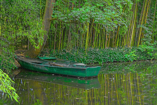 At the other side of the bridge was a little bit of the lake with a couple of row boats next to the tree. I like the way thee reflections in the water mirror the boats and the bamboo behind.