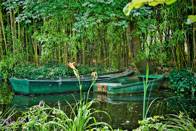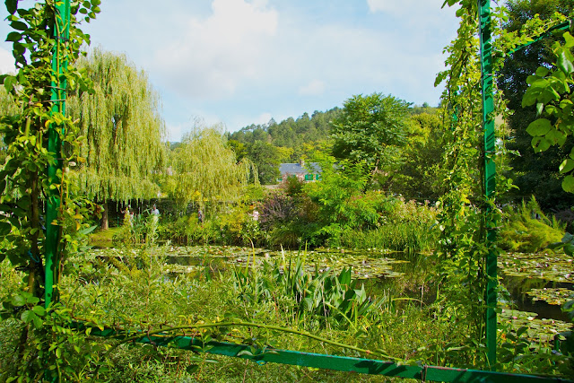 We made our way to the Japanese garden which was at the other side of the main road and was reached by going through a subway. This garden was far less formal than the garden by the house and contains the lake with the waterlilies that feature in some of Monet's paintings. There were some of the same structures in this garden so I used one to frame this photo across the lake. In the distance you might just see the roof of Monet's house behind the trees.