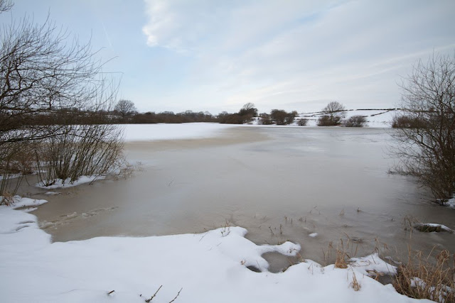The top end of the mill pond was clear of ice and there was little wind so it was a good opportunity to get some good reflections of the other bank. The snow on the ground and on the branches makes the reflection more interesting. The sky in the background was very blown out but I decided to leave it as I didn't think it detracted from the image at all.