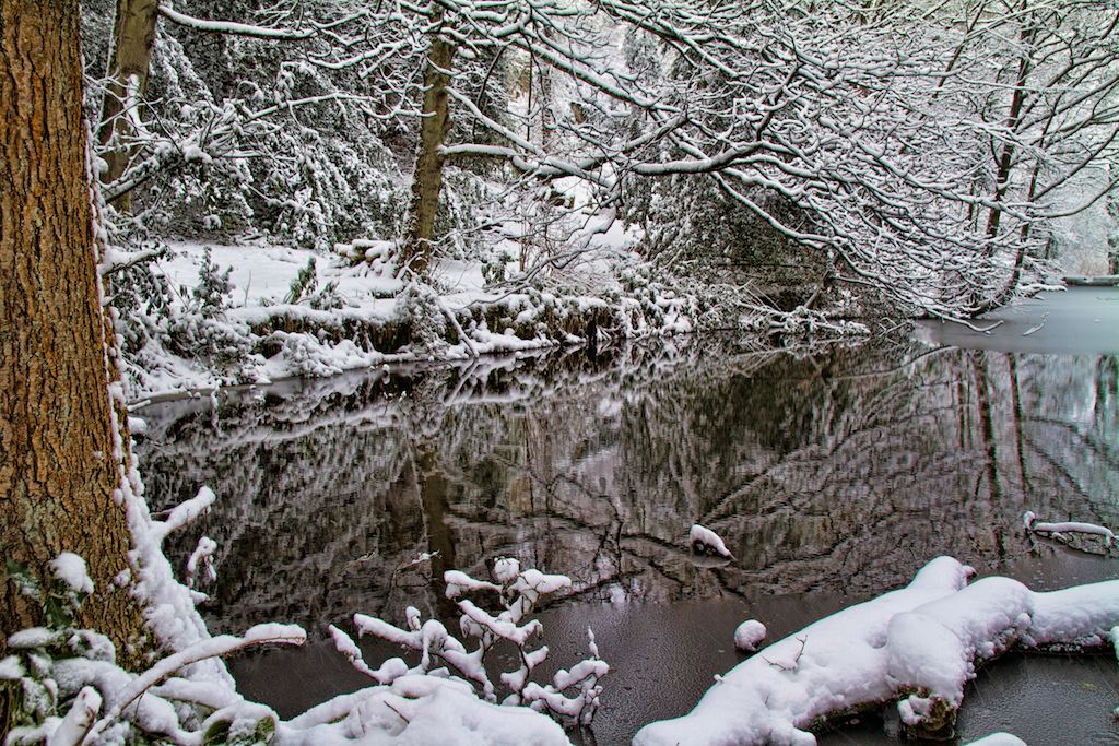 For this photo I went back to the non-frozen end of the pond where it was a bit wider so I could feature more of the reflections.