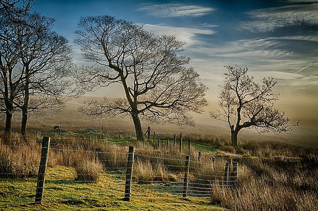 So thats the New Beginning part of the post title done, now onto the Strange World bit. A few weeks ago I got out early to make some new sunrise photos and ended up getting some very alien looking shots during the morning. I'll start with a few shots of the colourful sky from a field at Stocksmoor with a few trees in it. This first one is one of the trees with the clouds picking up the colours from the rising sun.