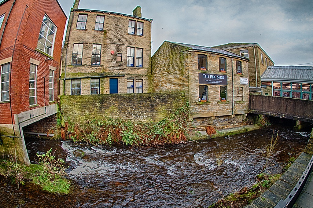 This building is the Picturedrome which was originally a cinema but is now mainly used as a music venue. Sometimes it is used as a cinema and the bar at the rear of the auditorium and the tiny seating area makes it a bit like watching films at home. It is a wonderfully intimate music venue where the audience is stood a few feet from the stage which is just a couple of feet high. The venue attract lots of the old bands and artists plus lots of tribute acts and local artists so has a lot of appeal to all music tastes. I love the way the fisheye lens has exaggerated curve in the river and brought a large amount of Holmfirth into the picture.