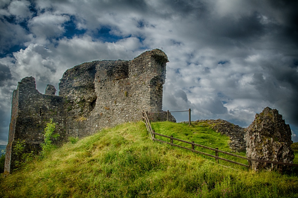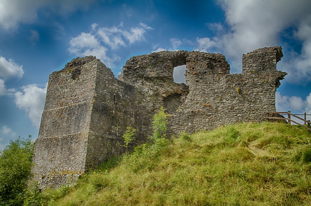 This first shot was as I approached the castle and although the scene was well lit by the sun there was quite a lot of cloud in the sky behind the castle. I quite like the way the fence leads up from the stones on the right side of the picture up to the bigger bits of castle on the left. I tried taking some more shots from nearer the stones and following the fence but the sun was straight ahead and I wasn't happy with the results.