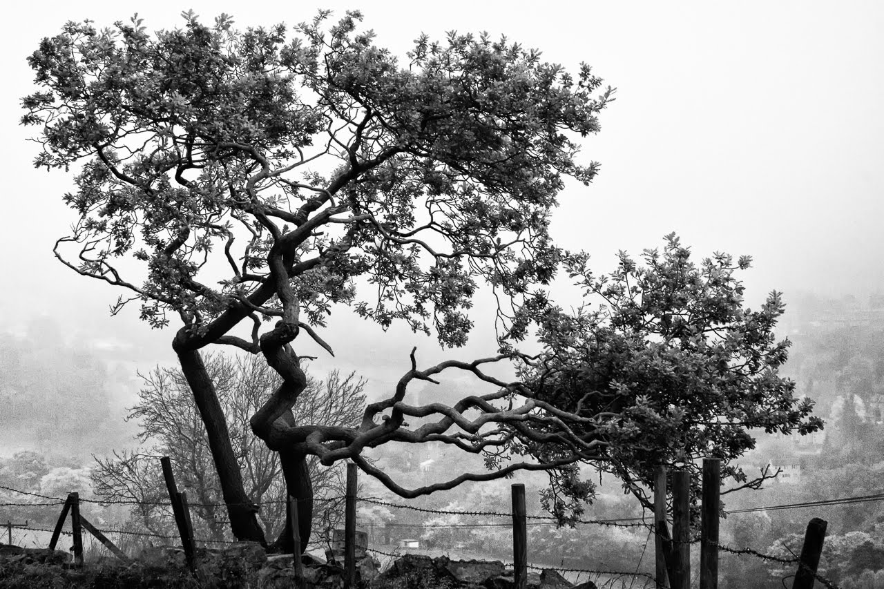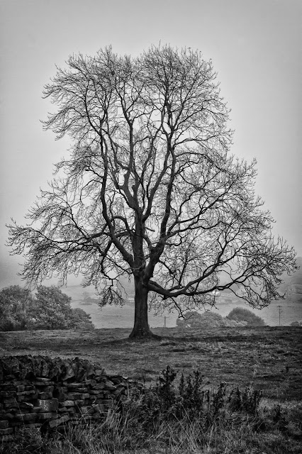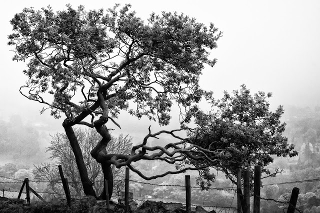 This first photograph is a small tree on the edge of a footpath which climbs fairly steeply up the hill opposite my house. The tree is on the edge of the hillside and looks as though it has been ravaged by the winds over the years. The branch at the front of the tree was coming out towards me and makes the photo look almost three dimensional.